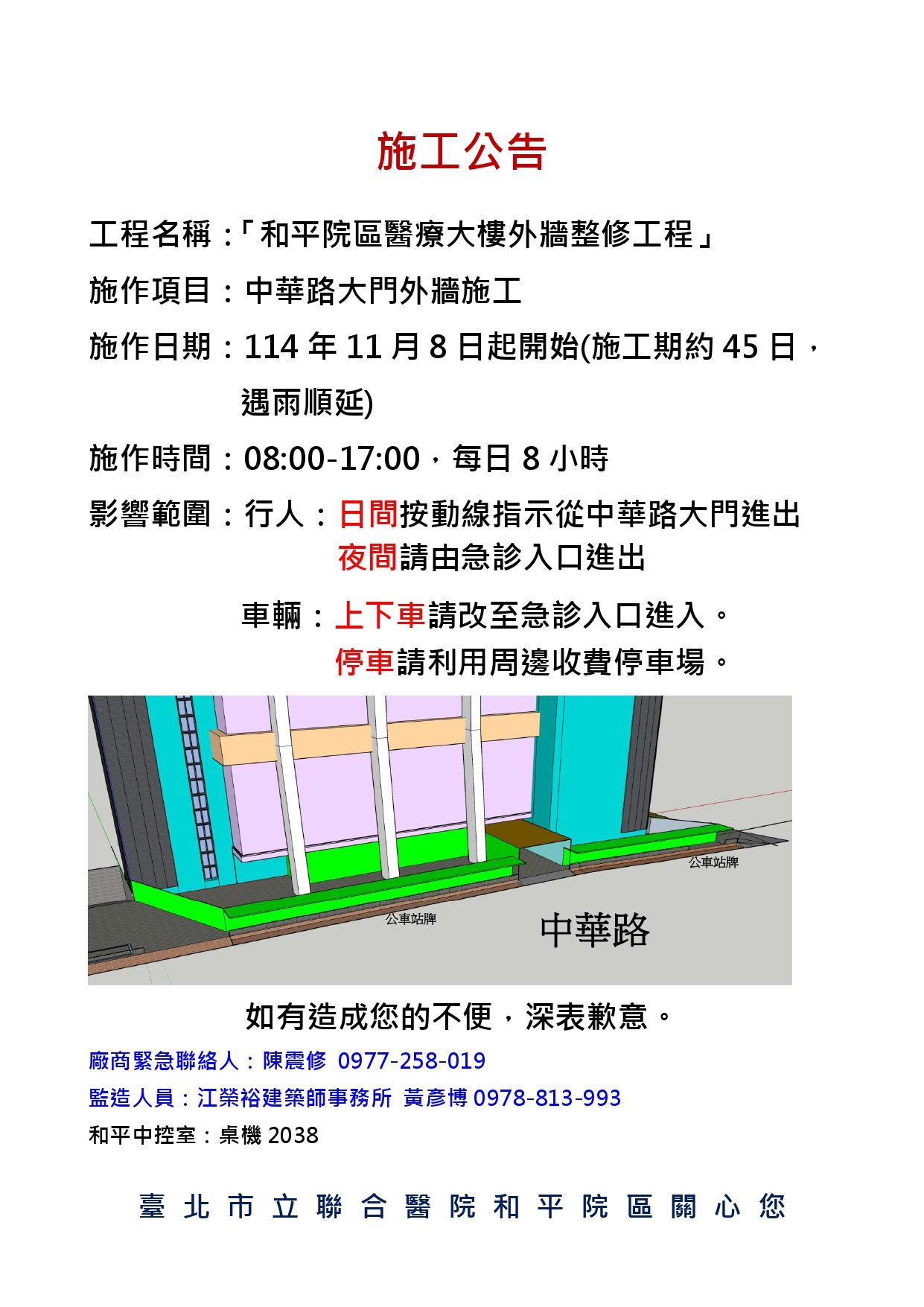 聯醫和平婦幼院區 (和平)-外牆大門整修公告
