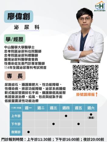 學歷中山醫學大學醫學士經歷林口長庚紀念醫院不分科住院醫師 臺北市立聯合醫院忠孝院區泌尿科住院醫師 臺北市立聯合醫院忠孝院區泌尿科總醫師臺灣泌尿科醫學會會員性傳染症友 ...更多